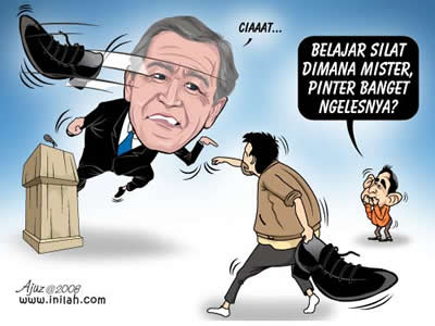 Apakah pemerintah AS sakit hati karena Presiden Bush ditimpuk sepatu? Sudah pasti. Tapi di Irak, sepatu melayang itu sebagai pamitan terindah untuk Bush. Muntazer Al Zaidi dieluk-elukkan di Irak. Tuntutan masyarakat agar dia dibebaskan juga semakin...